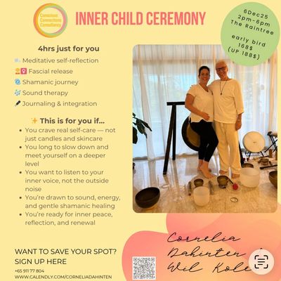 This Inner Child Ceremony is a space to slow down, listen deeply, and begin creating your inner support system — so you can reconnect with self-love, compassion, and your inner wise parent.